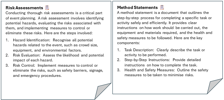 We are more than happy to take the hassle out of RAMs (Risk Assessment & Method Statements) for our customers, providing event specific Risk Assessments regarding our units, and our detailed Method Statements to any event organiser should they need it.